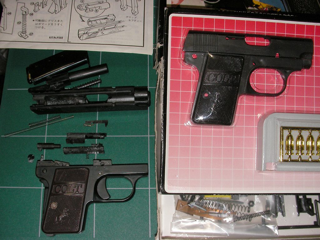 今度はもう一つのポケットオートであるコルト.25の場合だが、こちらは未組み立てが手元にあるので説明書を見ながら仕組みを確認できる。